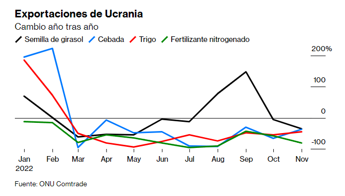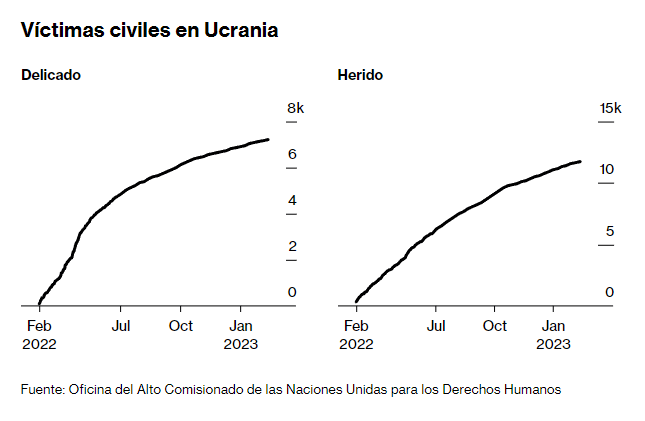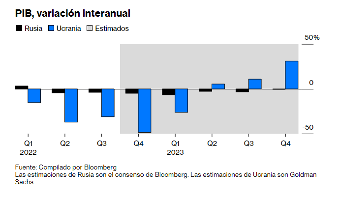 El consenso de Bloomberg sobre el PIB de Rusia en 2023 es de crecimiento cero, en comparación con una expansión del 2% para Ucrania. Eso es porque Ucrania ha logrado mantener su infraestructura en funcionamiento a pesar de los combates. Y si recupera algunas tierras agrícolas y recursos naturales, puede aumentar las exportaciones, que por ahora se han estabilizado en aproximadamente la mitad de su nivel anterior a la guerra. Las perspectivas de mejora económica de Rusia dependen del éxito de sus esfuerzos para reemplazar las importaciones con productos locales. Cualquier sustitución de este tipo tendrá que ocurrir lentamente dada la gran dependencia de Rusia antes de la guerra de los bienes extranjeros .