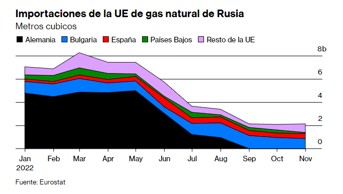Las pérdidas económicas de Rusia también parecen engañosamente pequeñas porque las sanciones que enfrenta, aunque sin precedentes en su escala, se han impuesto gradualmente. Al principio de la invasión, el país se benefició cuando los precios de la energía subieron como resultado de la guerra. En los últimos meses, se han hecho sentir los efectos de más embargos energéticos y un precio máximo sobre el crudo ruso. El diferencial de precios entre el crudo Brent, el punto de referencia tradicional para el petróleo en Europa, y la variedad de los Urales rusos se ha ampliado. El Ministerio de Finanzas de Rusia dice que el precio de los Urales ha caído un 42% en los últimos 12 meses.