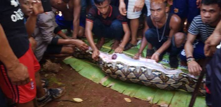 Una mujer desaparecida fue hallada devorada por una pitón gigante en Indonesia, luego de que los aldeanos extrajeran su cuerpo del interior de la serpiente.