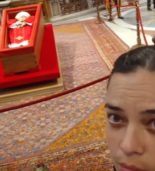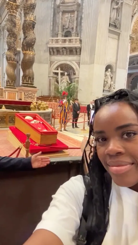 Mientras algunos parecían tristes en sus selfies, al menos una instagrammer publicó una foto de ella sonriendo mientras el Papa yace sin vida en un ataúd a pocos metros de distancia.