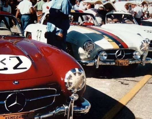 A fin de sustentar sus aspiraciones deportivas, el grupo de pilotos aportó dos vehículos excepcionales. Nada menos que dos unidades Mercedes Benz 300SL.