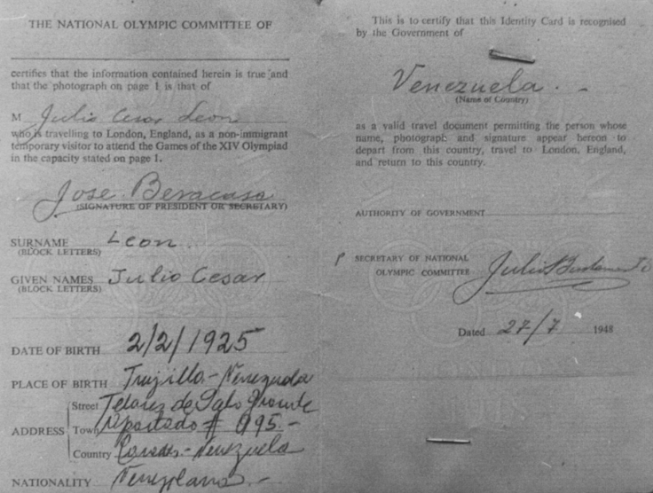 León fue escogido para representar a Venezuela en esos Juegos Olímpicos, por estar suspendidos 5 ciclistas criollos por el Comité Olímpico Venezolano (COV). León había obtenido la medalla de oro en los 200 metros contra reloj, en los II Juegos Bolivarianos de Lima, en 1947.