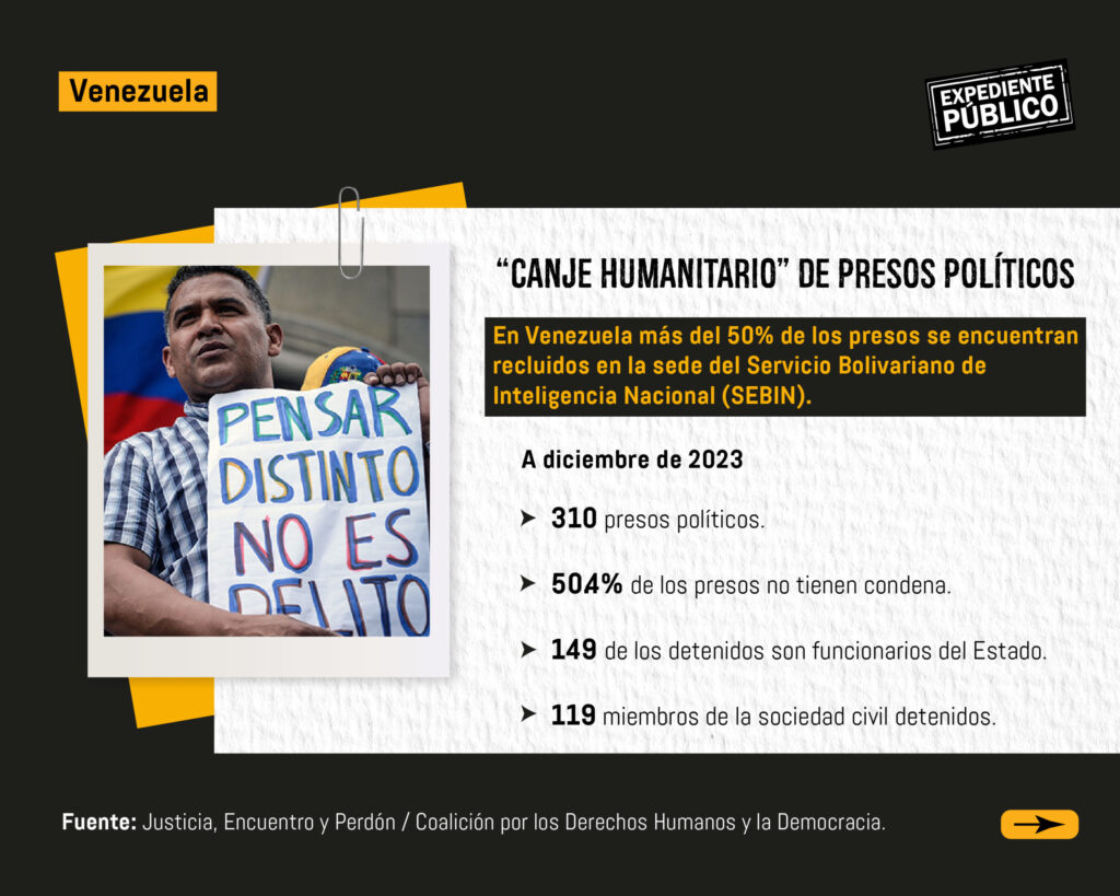 En Venezuela, el régimen de Nicolás Maduro mantiene encarcelado a 310 personas por motivos políticos, según la organización Justicia, Encuentro y Perdón.