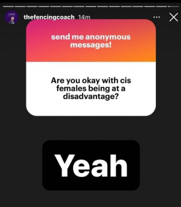 En respuesta, algunos usuarios de las redes sociales le enviaron mensajes anónimos pidiéndole que aclarara su postura, aparentemente desconcertados por el hecho de que un entrenador de esgrima de EE.UU. se opusiera tan descaradamente a las oportunidades justas para las atletas femeninas.