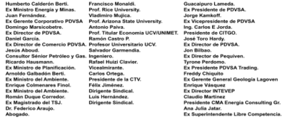 Nosotros los abajo firmantes, conscientes de la importancia que reviste la Industria Venezolana de los Hidrocarburos como factor esencial en las soluciones de los problemas de los venezolanos, de una manera urgente e integral, presentamos a la consideración de todo el país, la siguiente propuesta para lograr por la vía del consenso una visión compartida de lo que debe ser el enfoque a aplicar en el corto, mediano y largo en nuestra industria.