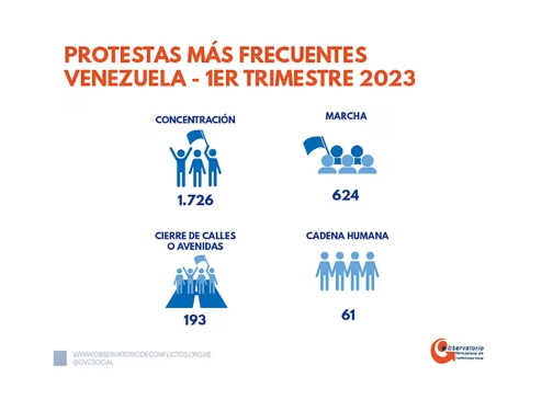 En el primer trimestre del año, hubo 1.726 concentraciones, 624 marchas, 193 cierres de calles o avenidas y 61 cadenas humanas.