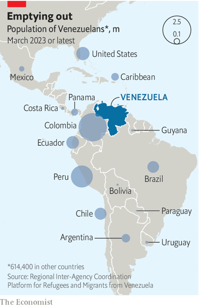 Un rival clave se ha exiliado. Juan Guaidó , un político de oposición, había sido reconocido por más de 50 gobiernos democráticos en 2019 como el legítimo presidente de Venezuela. El 24 de abril dijo que había viajado en secreto por tierra a Colombia para asistir a una conferencia, organizada por Gustavo Petro, el presidente de izquierda de Colombia, para reunir a representantes de varios gobiernos para discutir sobre Venezuela. Colombia acusó a Guaidó de ingresar al país “irregularmente” y dice que accedió a volar a Estados Unidos. Guaidó dice que fue deportado. “La persecución del dictador en estos días llega a Colombia”, refunfuñaba mientras se marchaba.