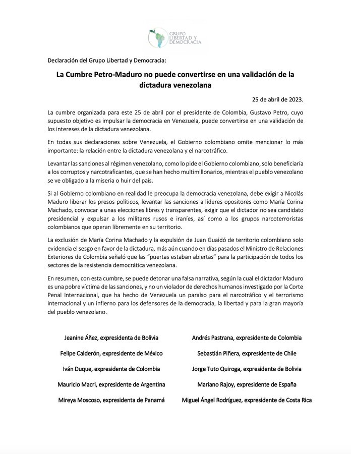 “Igualmente negarse a la persecución, acoso o cualquier acción represiva contra miembros de la dirigencia política opositora quienes ejerzan legítimos derechos políticos y civiles en cuanto a libre expresión de opinión; reuniones ciudadanas, llamados a elecciones, propaganda electoral y similares”.
