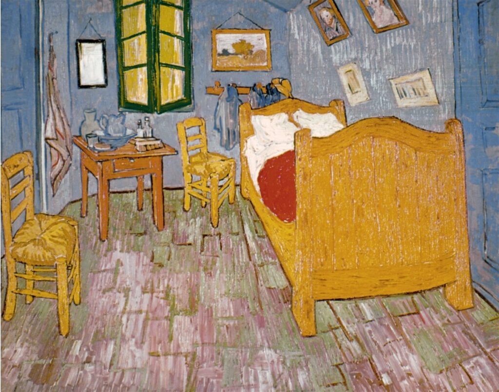 En su intensa correspondencia con su hermano Theo, al que siempre consideró su único amigo, le ofrece una explicación sobre su obra El dormitorio del artista en Arlés: «Esta vez se trata únicamente de mi habitación; sólo que aquí el color ha de serlo todo, y su simplificación, que da una mayor grandiosidad a las cosas, pretende evocar el descanso o el sueño en general. En una palabra, al mirar el cuadro debería reposar la mente, o más bien la imaginación».