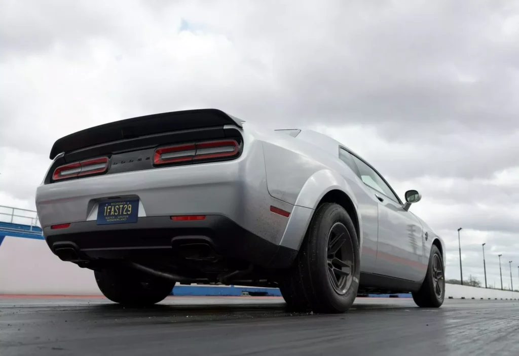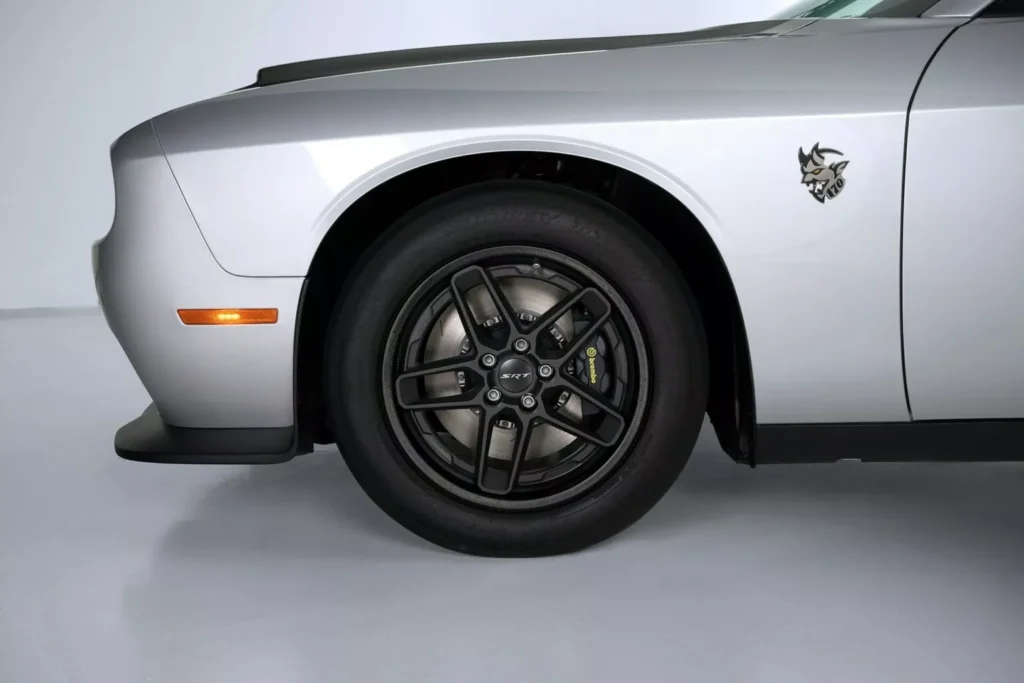 Las actualizaciones no terminan ahí, ya que el Challenger SRT Demon 170 es el «primer automóvil de producción en fábrica construido con neumáticos radiales de arrastre escalonados y bengalas de guardabarros». Como parte de este esfuerzo, Dodge y Mickey Thompson dedicaron meses a crear gomas a medida para el muscle car definitivo.