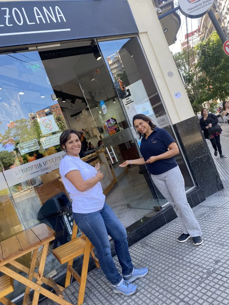 La puerta de la panadería venezolana de la esquina Paraguay y Jean Jaures se abre y se cierra todo el tiempo. De la mañana temprano hay clientes tomando un café, y comiendo algún pan relleno salado o dulce al paso. Donna fue la primera panadería que comenzó a ofrecer elaboraciones típicas venezolanas a pedido de la comunidad que más creció en los últimos años (entre 2018 y 2021 el gobierno argentino otorgó 272 mil permisos de residencias). Durante los primeros meses sus propietarias venezolanas se dedicaron a elaborar facturas argentinas, sin haber tenido experiencia en el rubro.
