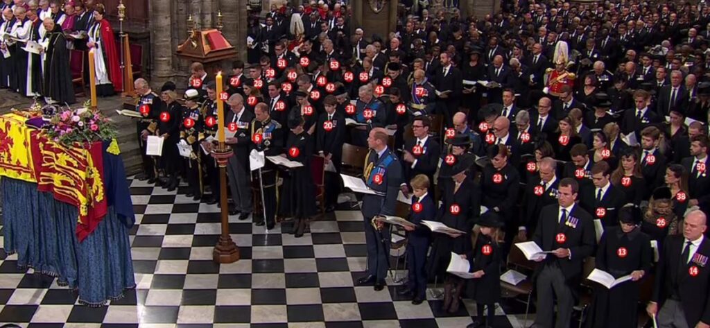 “Ese es el uniforme de gala de cualquier regimiento militar que representen: cada rama de las fuerzas armadas tiene su uniforme práctico y un uniforme de gala con el que obviamente no se puede combatir”, según explicó Hanson. “Esos están allí para ocasiones ceremoniales, incluidos funerales y luto”, agregó. También se pudo ver a clérigos como el arzobispo de Canterbury luciendo brazaletes negros sobre sus vestiduras, como lo hizo durante la proclamación del rey Carlos III.