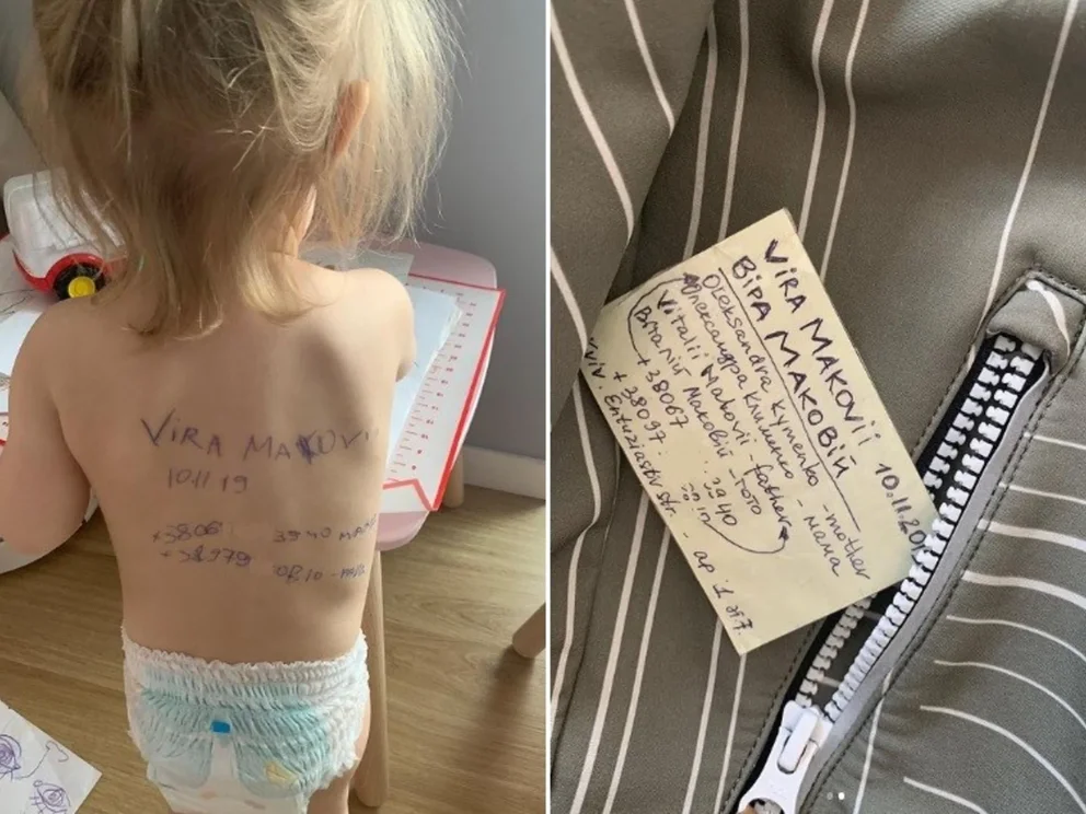 El terror de las madres ucranianas a perder a sus hijos en la guerra. Esta niña tenía su nombre y contacto escrito en la espalda y en una ficha dentro de su abrigo. (Umit Bektas/Reuters)