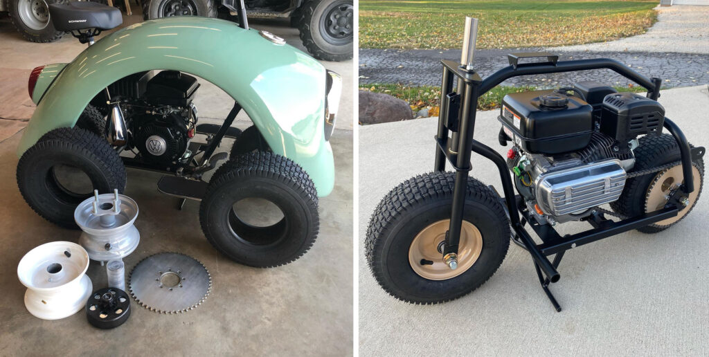Se parecen un poco al hermano pequeño del Volkswagen Beetle. El creador Brent Walter comenzó a construir sus minimotos motorizadas inspiradas en VW a partir de viejos guardabarros, no tanto por un propósito utilitario sino por diversión.
