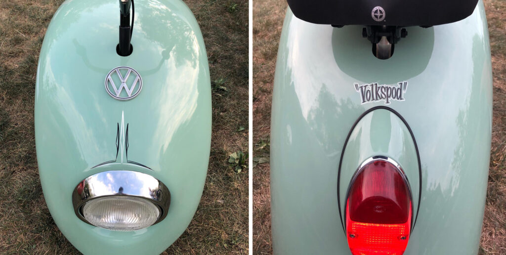 Con faros de gran tamaño y los colores originales de VW Bug, los scooters tienen un ambiente claramente vintage.