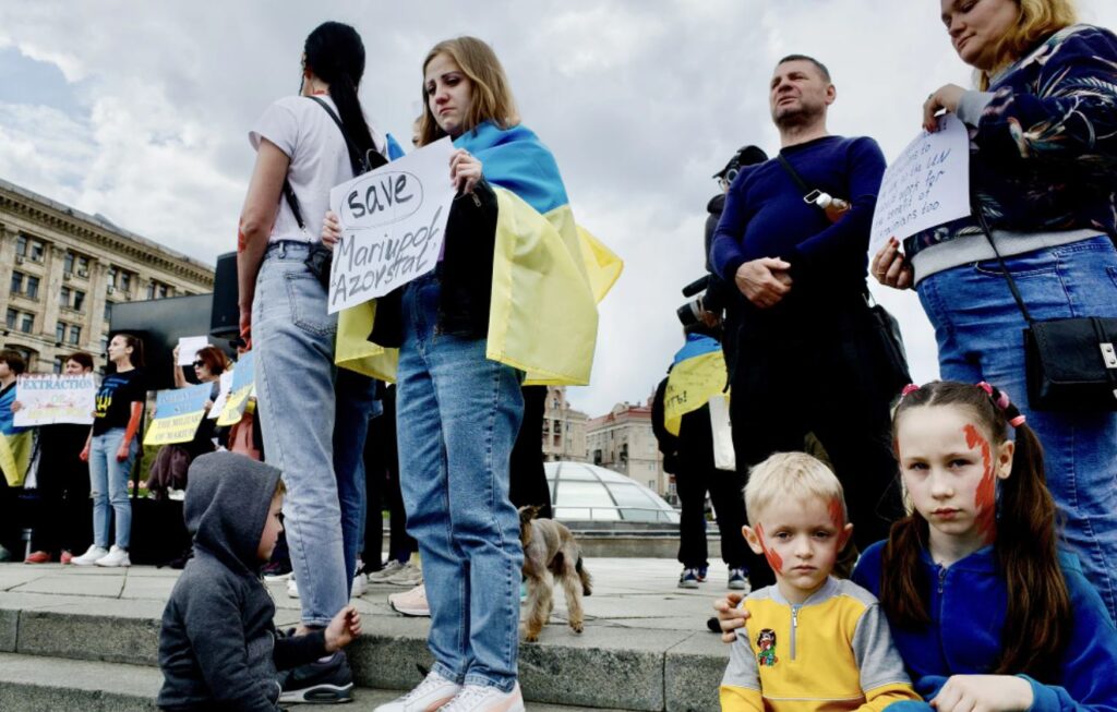 A pesar de la renovada actividad en la ciudad, la guerra nunca está lejos. En la céntrica Plaza de la Independencia el martes por la tarde, una multitud se reunió para pedir ayuda internacional para evacuar a los cientos de soldados ucranianos que aún se aferran al último bastión del territorio controlado por Ucrania en el sureste de Mariupol, la fábrica de hierro y acero Azovstal.