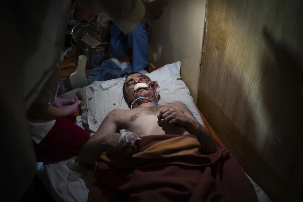 Las paredes de la sala de cirugía temblaron por el fuego de artillería y ametralladoras afuera, y parecía más seguro quedarse adentro. Pero los soldados ucranianos tenían órdenes de llevarnos con ellos.