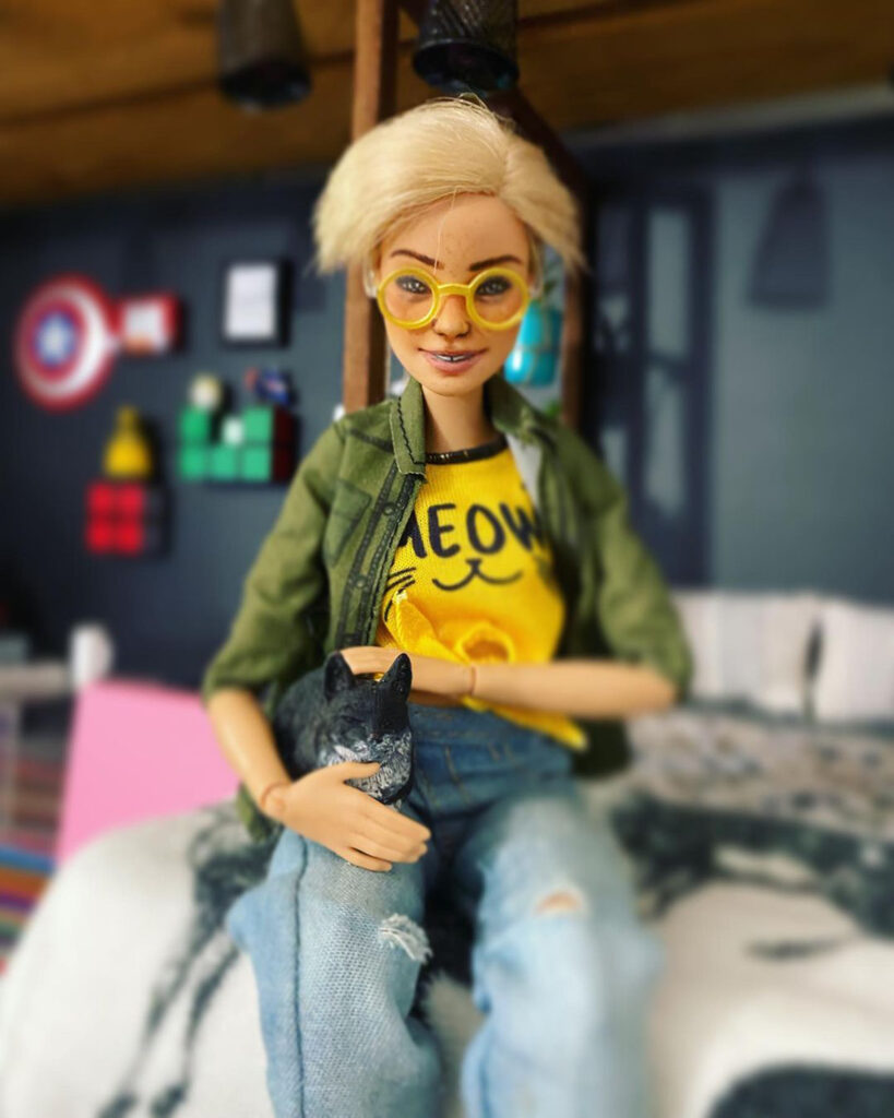 Durante sus transformaciones, Betty no duda en revisitar todo el aspecto de las muñecas, alejadas del universo rosa y girly que las conocemos. Les retoca las formas, les trae ropa nueva, a veces una tez más cansada o incluso un peinado que no está impecablemente hecho. Objetivo: ofrecer a los niños una visión más representativa de la mujer a través de sus muñecas.
