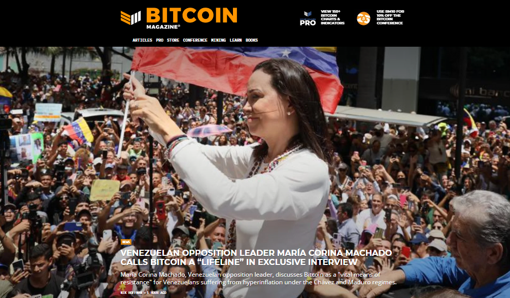 En una entrevista exclusiva con Alex Gladstein, director de estrategia de la Human Rights Foundation (HRF), la líder de la oposición venezolana María Corina Machado habló sobre el papel vital de Bitcoin en la lucha contra el colapso económico y el autoritarismo en Venezuela.