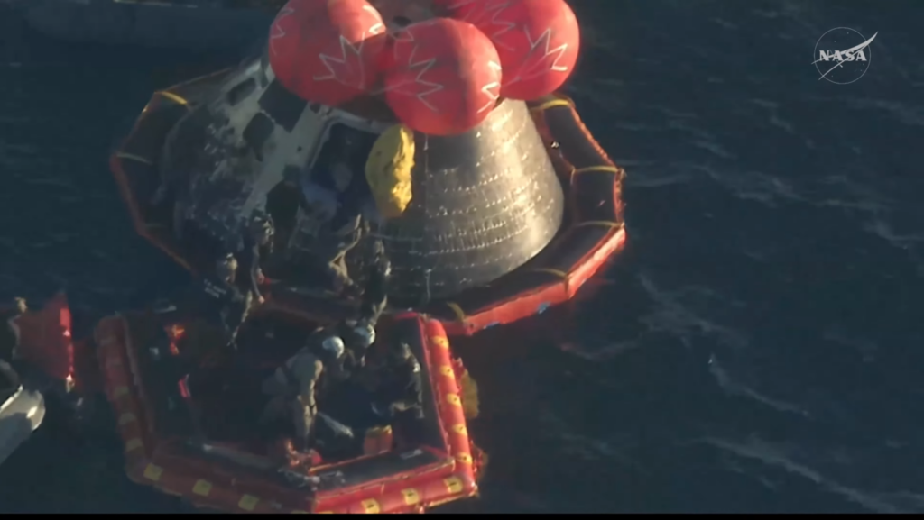 La NASA, por su parte, ha confirmado que aproximadamente una hora después del amerizaje, la tripulación de la cápsula Orión ha sido evacuada «sana y salva» de la nave y que los cuatro tripulantes se encuentran en buen estado de salud tras completar esta travesía histórica, que supone el primer viaje tripulado alrededor de la Luna en más de 50 años y uno de los pasos clave del programa Artemis. Tras el amerizaje, un equipo conjunto con la Marina de Estados Unidos se ha desplegado para recuperar la cápsula y asistir a los astronautas, que serán sometidos a evaluaciones médicas antes de regresar con sus familias. Una vez a bordo y antes de regresar a tocar nuevamente tierra firme, los astronautas serán sometidos a exámenes médicos, tras los cuales subirán a bordo de un avión con destino al Centro Espacial Johnson de la NASA en Houston, Texas.
