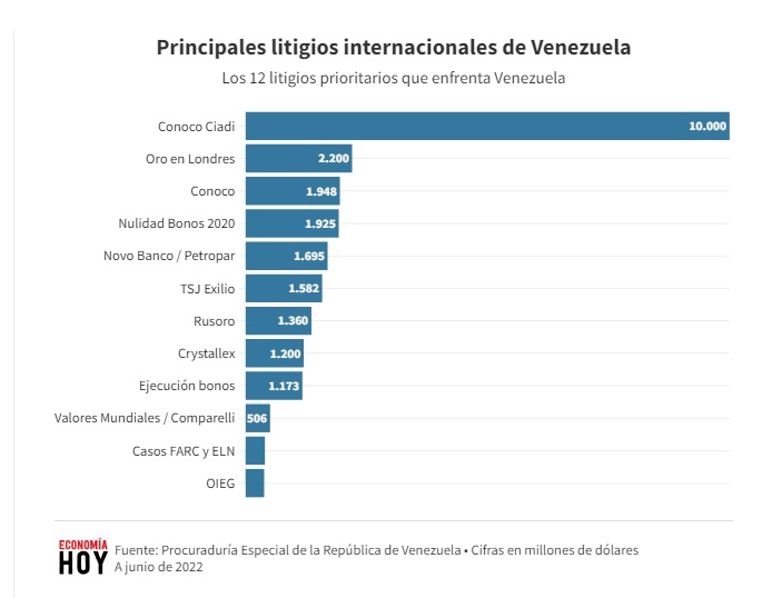 Conoco le ganó a Venezuela el arbitraje en el Centro Internacional de Arreglo de Diferencias relativas a Inversiones (CIADI) iniciado en 2007 tras la expropiación, durante el gobierno de Hugo Chávez, de su participación en los proyectos petroleros de Petrozuata, Hamaca y Golfo de Paria. La decisión a favor de la petrolera se dictó en 2019 y Venezuela todavía intenta revocarla en esa instancia, no obstante la empresa recibió el aval para intentar el reconocimiento en Estados Unidos.