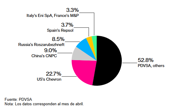 Petróleos de Venezuela S.A. siempre ha mantenido derechos comerciales exclusivos, según las fuentes, que pidieron no ser identificadas al tratarse de contratos privados. Al menos una de las empresas ha decidido no proceder al proyecto debido a que no pudo obtener una licencia estadounidense para operar allí, según una de las fuentes.Los acuerdos ilustran la estrategia del presidente Nicolás Maduro para impulsar la economía y llenar el vacío dejado por Chevron y otras grandes petroleras occidentales tras la negativa del gobierno de Donald Trump a extender las licencias que les permitían operar en el país a pesar de las sanciones. Chevron representaba casi una cuarta parte de la producción petrolera de Venezuela, la industria más importante del país y su mayor fuente de divisas.La licencia de Chevron para producir y exportar crudo a EE. UU. venció a principios de abril , y la compañía tenía hasta el 27 de mayo para finalizar las obras. Los permisos de los proveedores de servicios estadounidenses Halliburton Co. , Schlumberger NV , Baker Hughes Co. y Weatherford International Plc expiraron a principios de mayo .“PDVSA tiene un plan para seguir produciendo petróleo a pesar de las medidas coercitivas unilaterales de Estados Unidos”, dijo la vicepresidenta y ministra de Petróleo, Delcy Rodríguez, el 29 de mayo. PDVSA y el Ministerio de Petróleo de Venezuela no respondieron a una solicitud de comentarios.