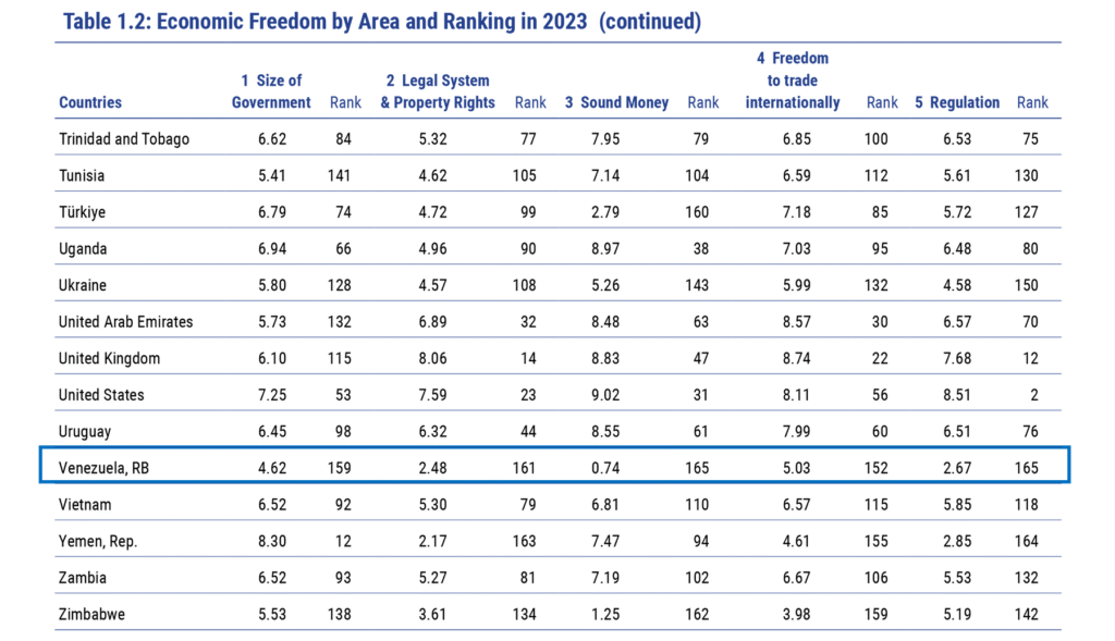 Por otro año seguido, Venezuela figura entre las economías menos libres del mundo, de acuerdo con la más reciente medición realizada por el Fraser Institute de Canadá, con el apoyo de Cedice Libertad.