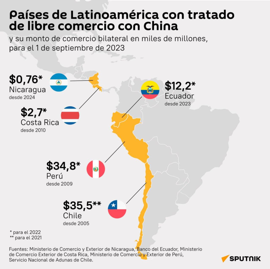 Sputnik te presenta el monto de comercio bilateral entre China y estos países latinoamericanos.