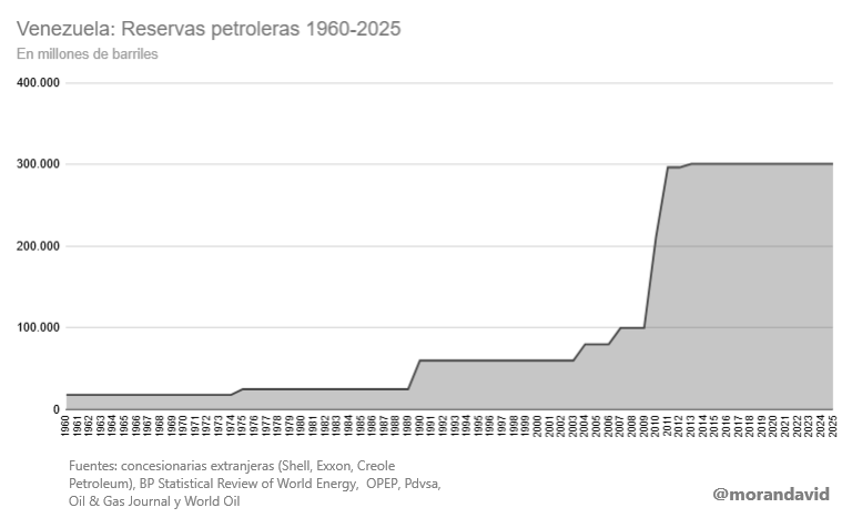Las reservas probadas se han mantenido oficialmente en 300.878 millones de barriles desde 2013, sin revisiones significativas. Sin embargo: