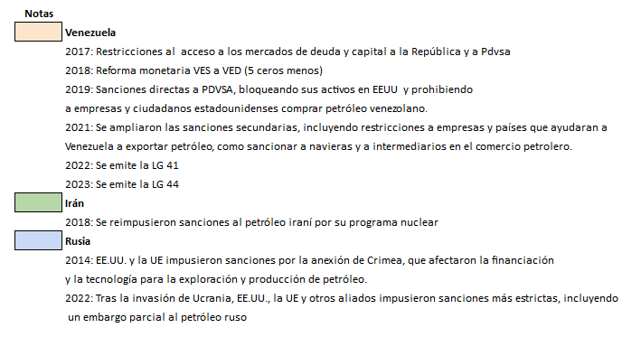 En contraste, Irán y Rusia, bajo sanciones más severas, han logrado controlar mejor su inflación mediante políticas fiscales restrictivas y menor dependencia de la monetización del déficit. Rusia, por ejemplo, mantiene un superávit fiscal, mientras que Venezuela continúa con déficits significativos.