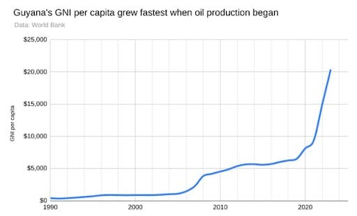 El PIB per cápita de Guyana ha experimentado un crecimiento extraordinario desde 2020