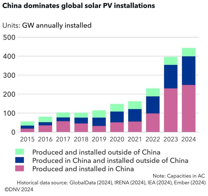 • China representó el 58% de las instalaciones solares mundiales y el 63% de las nuevas compras de vehículos eléctricos el año pasado