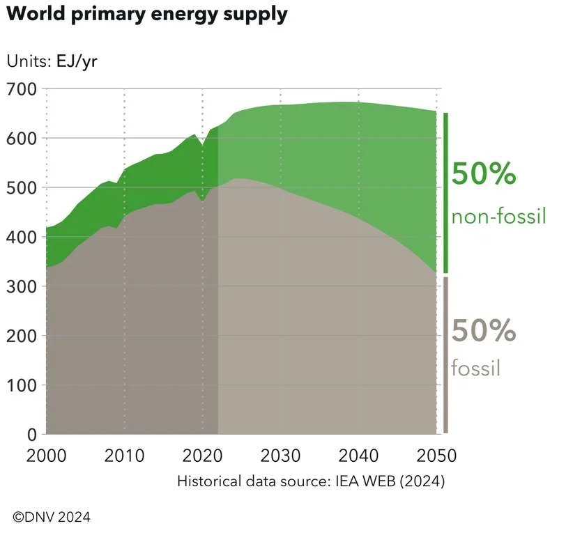 En la edición 2024 del pronóstico para 2050, DNV afirma que se ven algunos avances que aceleran la transición y otros la frenan. El cambio masivo hacia las energías renovables es imparable, pero demasiado lento para cumplir los objetivos climáticos globales.
