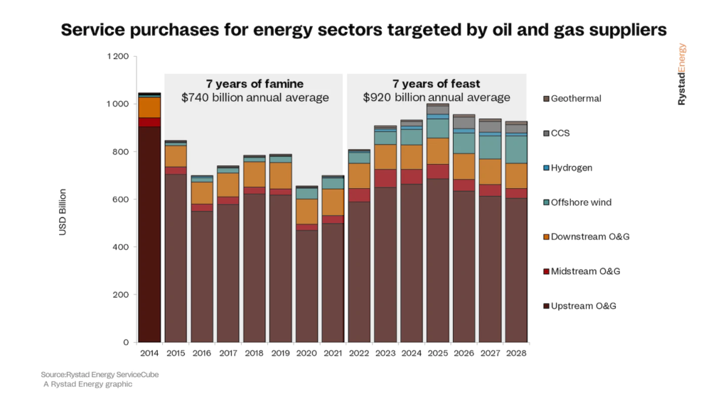 Rystad Energy espera que el mercado global de contratistas de petróleo y gas alcance un pico de USD 1 billón en 2025 y se mantenga en niveles altos durante varios años a partir de entonces.