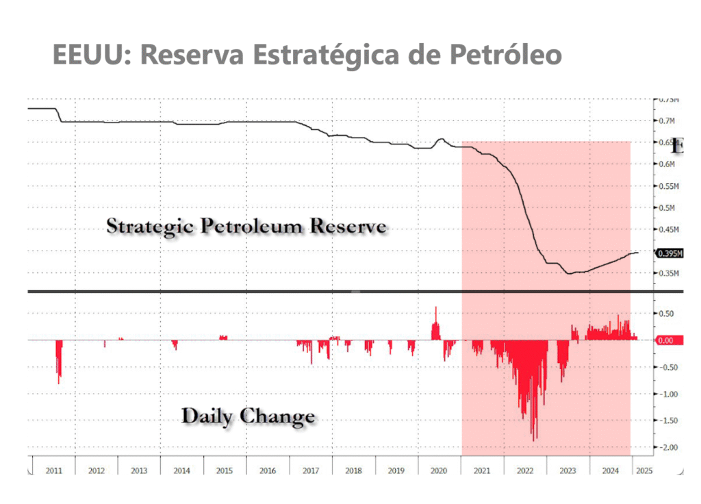 Recordemos que, durante el primer mandato de Biden, la imprudente administración redujo peligrosamente la SPR de alrededor de 650 millones de barriles a alrededor de 395 millones.