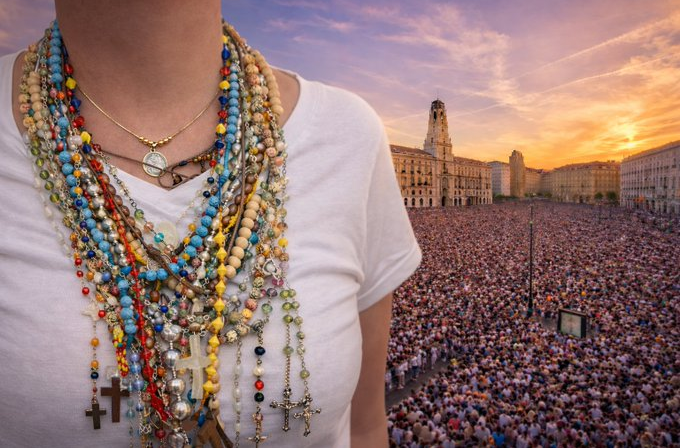 No son solo las madres. También los padres, con la mirada endurecida por la ausencia, entregan el rosario que heredaron de sus abuelos como quien deposita la última prueba de su hombría. Los niños, con esa fe pura e inocente que el exilio aún no ha podido tocar, lo ofrecen con sus manitas abiertas, sin entender del todo que están entregando su tesoro más querido. Es el pueblo venezolano entero, católico y creyente, el que se vacía en ese gesto: un país donde la fe no es adorno dominical, sino el hilo que ha mantenido unida a la familia en medio del derrumbe, entre misas improvisadas en salas de estar, velas encendidas en la oscuridad y rosarios rezados en voz baja entre Zoom y WhatsApp desde cualquier rincón del planeta.
