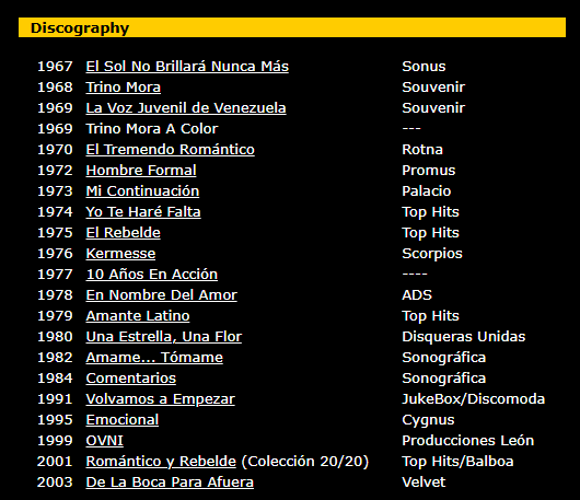 Trino Mora representa uno de los iconos de la música rock y la rebeldía en Venezuela y su nombre es un punto de referencia obligado en cualquier escrito sobre este género musical en nuestro país.