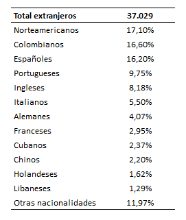 Para ese entonces, los norteamericanos, colombianos y españoles sumaban el 50% de los extranjeros registrados