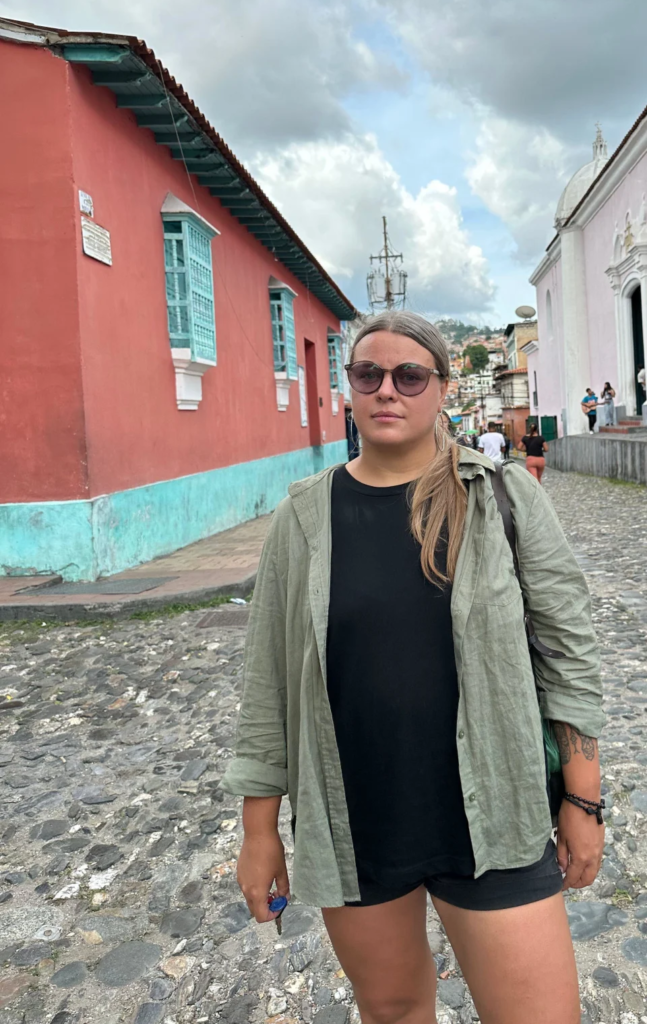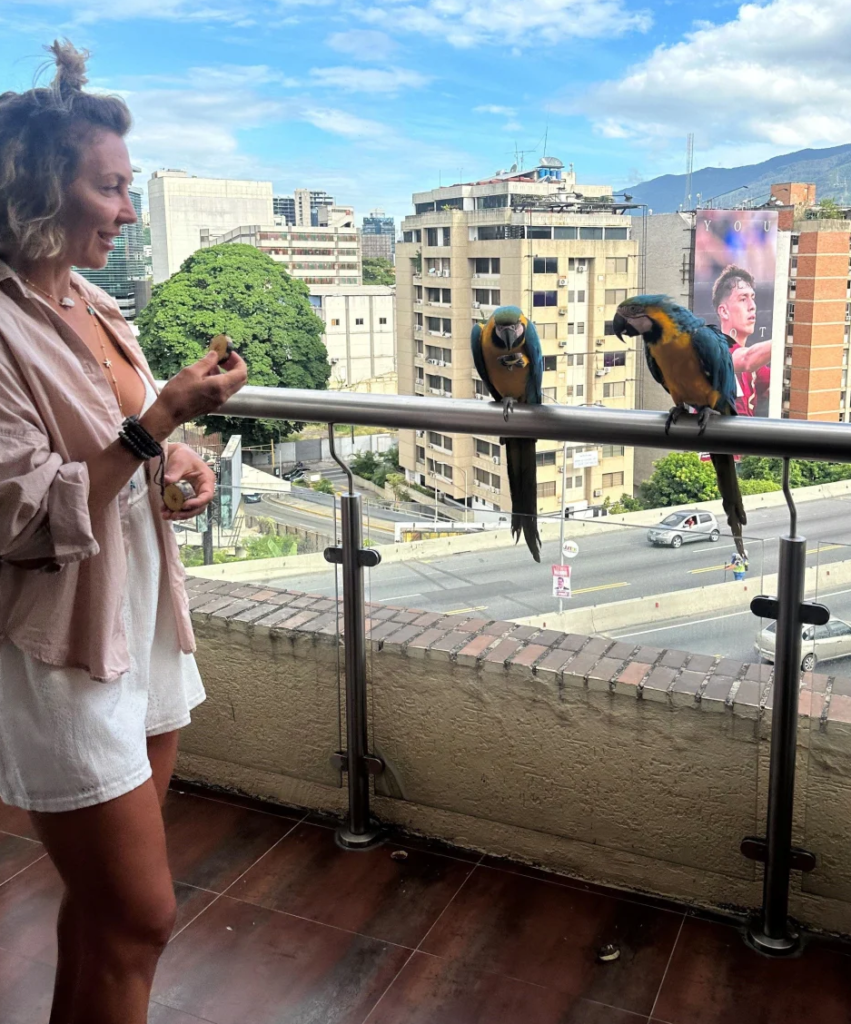 «Me gusta. El clima es genial, el mar igual, y esto…», añade apuntando con los brazos a los barrios de Petare que la rodean. «Nunca he visto nada así. He visitado 36 o 37 países y Venezuela me ha dejado impresionada».