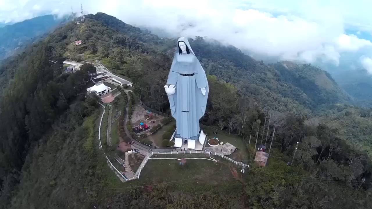 El monumento se encuentra a una altura de 1600 msnm, en la llamada Peña de la Virgen—donde se dice que apareció la virgen en el año 1570—, por lo que con la altura de la obra misma, junto a la de su enclave de montañas y vegetación tropical, proporcionan una espectacular vista panorámica de la región.