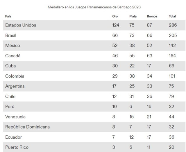 Luego de la victoria de Andrés Madera frente al chileno Tomás Freire y coronarse como bicampeón panamericano de karate en la categoría -67 kilos, Venezuela logró alcanzar la décima posición del medallero del Panamericano Santiago 2023 con 44 preseas.