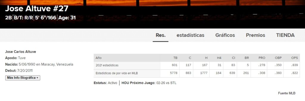 Nacido en Maracay, Altuve con 31 años de edad, está en su 13va temporada en las Grandes Ligas, todas con los Astros de Houston.