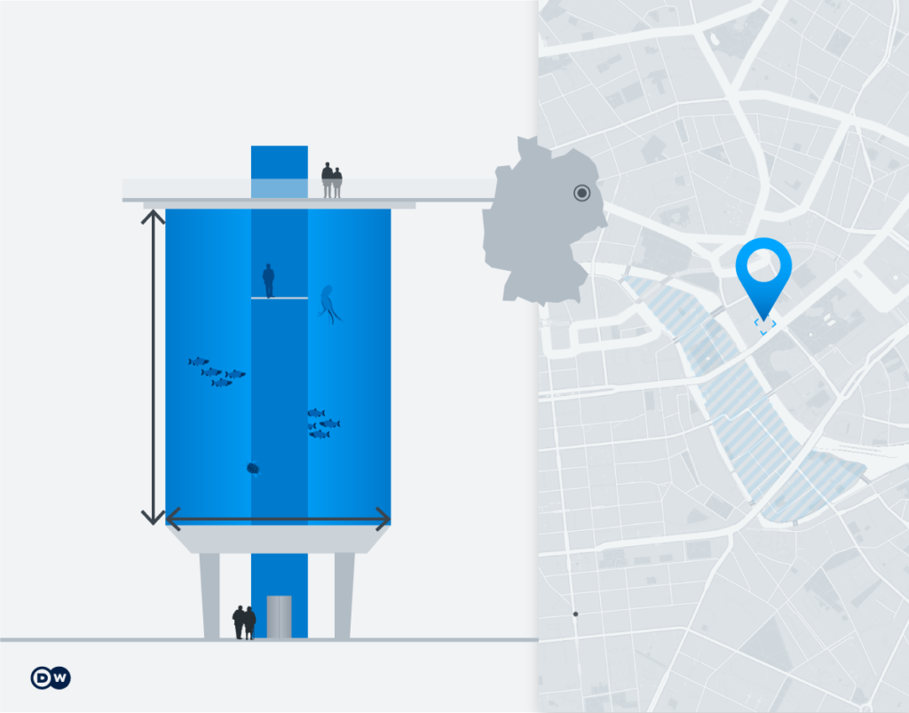 El AquaDom, de 25 metros de altura, se describía como el tanque cilíndrico más grande del mundo y albergaba más de mil peces tropicales antes del incidente. Entre los 80 tipos de peces que albergaba había peces tang azul y payaso, dos coloridas especies conocidas por la popular película de animación «Buscando a Nemo».
