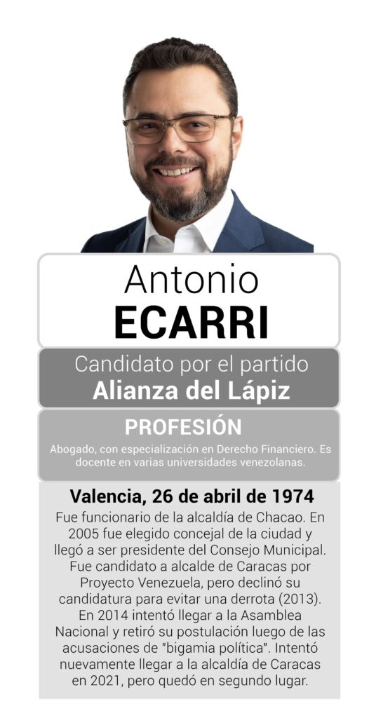 Por último, en 2021 volvió a apostar por la alcaldía de Caracas con Fuerza Vecinal, pero al poco tiempo fue cuestionada por no ceder ante Tomás Guanipa, quien era el candidato de la Plataforma Unitaria. La postulación de Ecarri significó la división de los votos de la oposición en el municipio de la capital venezolana. Finalmente, quedó en segundo lugar y desde entonces inició su carrera a la Presidencia.