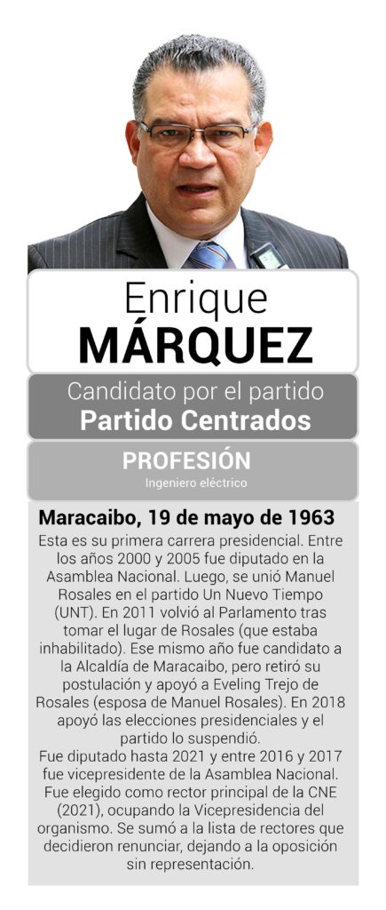 Márquez fue diputado hasta 2021. Luego, fue elegido como rector principal del CNE, ocupando la Vicepresidencia del organismo.