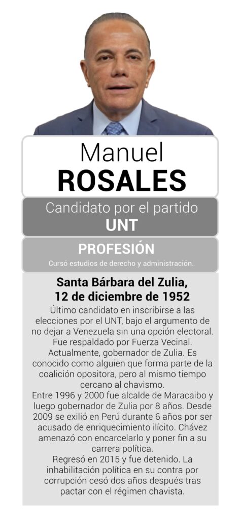 Rosales es conocido como alguien que forma parte de la coalición opositora, pero al mismo tiempo cercano al chavismo. Actualmente es gobernador de Zulia, el segundo estado más populoso de Venezuela y tiene una vasta experiencia en la gestión pública.