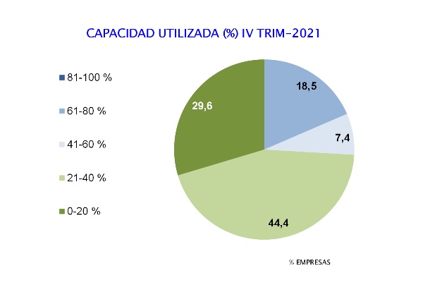 En ese sentido, aunque se observa una mejoría en la situación del sector, según la Encuesta de Coyuntura del IV trimestre de 2021 realizada por la Asociación Venezolana de la Industria Química y Petroquímica (ASOQUIM), 74% de las empresas están operando por debajo del 40% de su capacidad. Es decir, 3 de cada 4 empresas tienen ociosa más del 60% de su capacidad de producción. Lo ideal es que las empresas trabajen a 70 u 80% de su capacidad para poder producir eficientemente optimizando costos y generando más empleos.