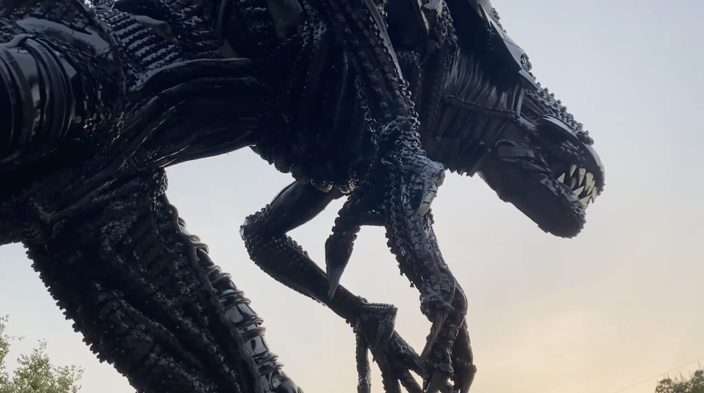 Alien no es la primera obra de arte de este artista. Como verdadero fanático de la ciencia ficción, ha realizado esculturas de Godzilla, Venom o un tiranosaurio de Jurassic Park.