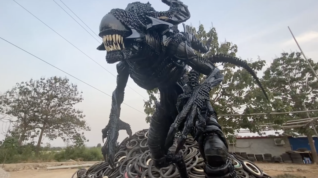 Para rendirle homenaje al director de Alien, Ridley Scott, el artista chino Cao Shennge ha realizado una escultura de tamaño natural tan increíble como aterradora del personaje principal de la saga con un material inusual.