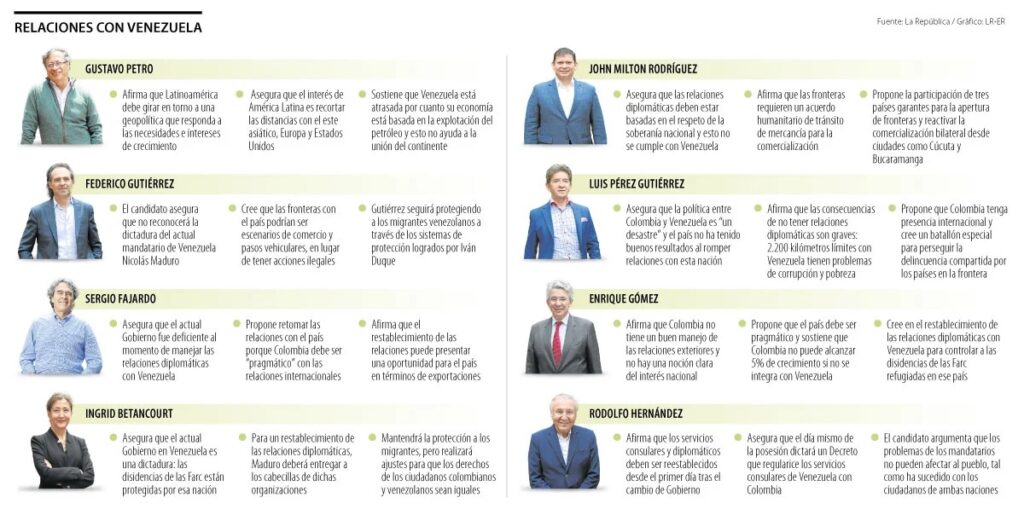 A las puertas de las elecciones presidenciales, algunos candidatos aseguran que es “pragmático” restablecer los nexos con el país vecino, mientras que otros no quieren reconocer la dictadura, sobre todo si se tiene en cuenta que las disidencias de las Farc han operado en los límites de ambas naciones.